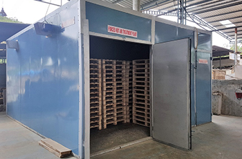 Our Forced Hot Air Treatment (FHAT) plant ensures that the wood used for packaging meets the ISPM 15 norms.